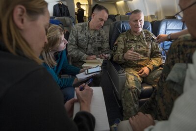 advisor to the chairman of the Joint Chiefs of Staff, speaks to reporters.
