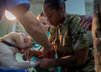 and an Army animal care specialist conducted surgeries on dogs and cats and